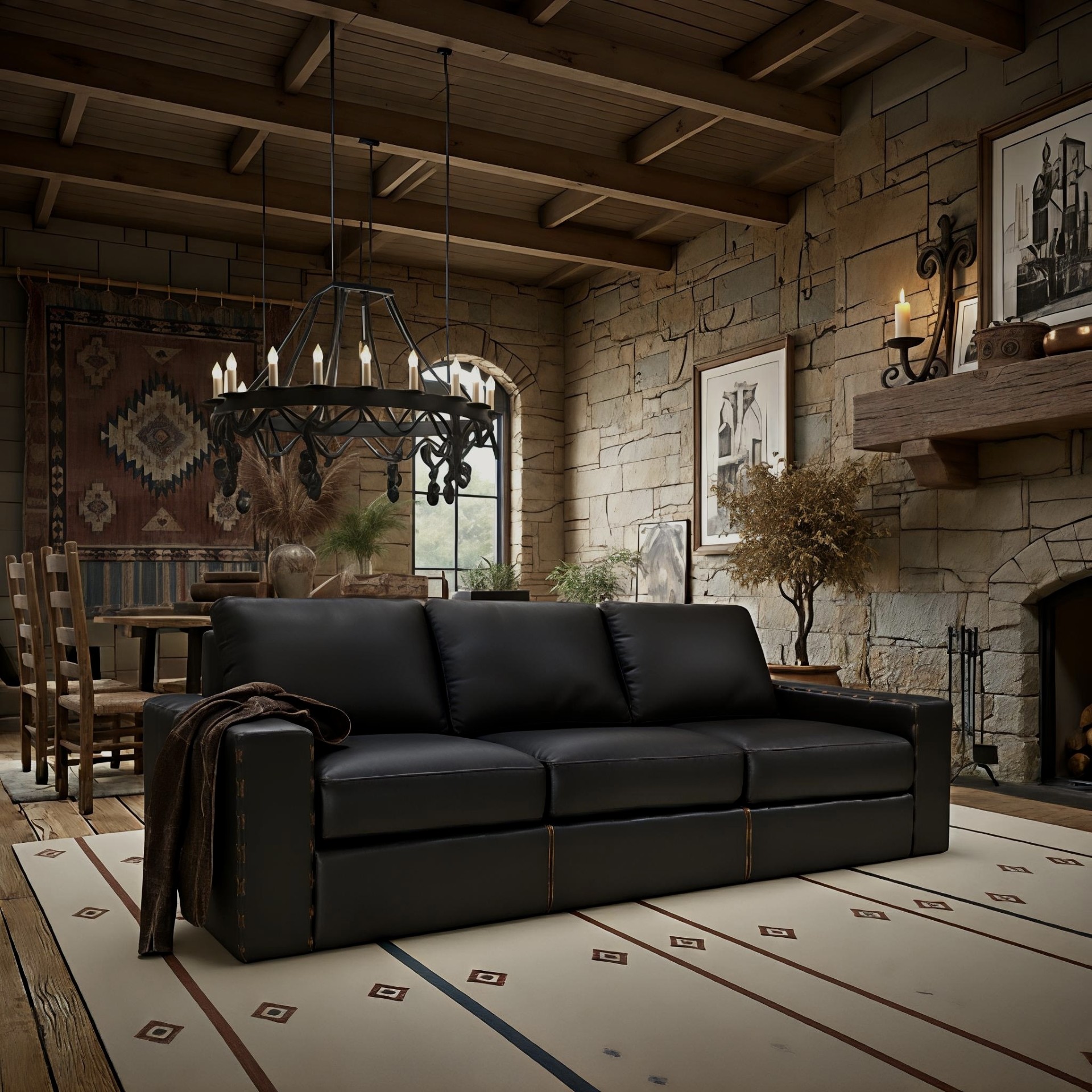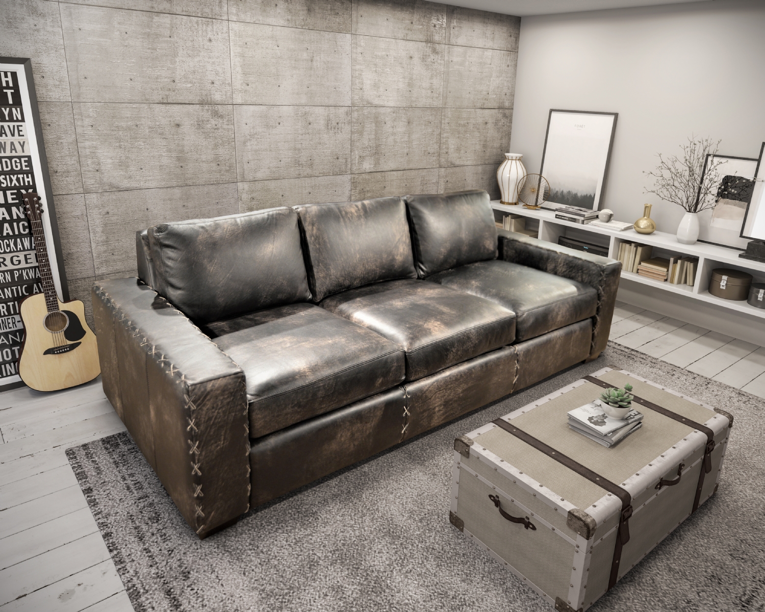 Hand-applied cross stitching adds just enough detail to the Omnia Breckenridge to stand out as a unique centerpiece in any room.
